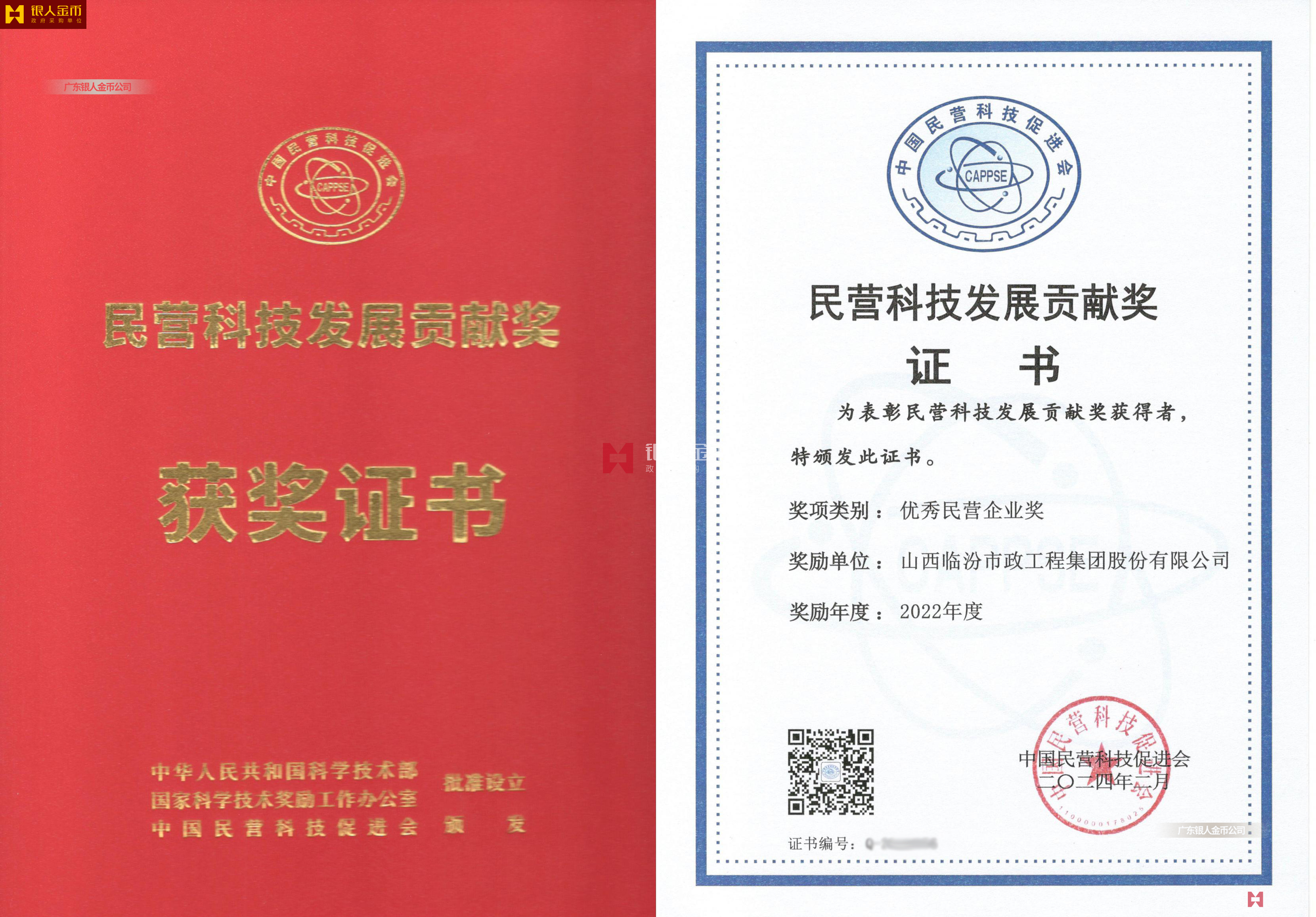 中華人民共和國科技部民營科技發(fā)展貢獻獎證書(圖)