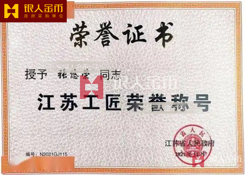 中共江蘇省委省政府省人社廳省總工會江蘇大工匠獎?wù)聞渍陆K工匠徽章獎牌證書(圖)