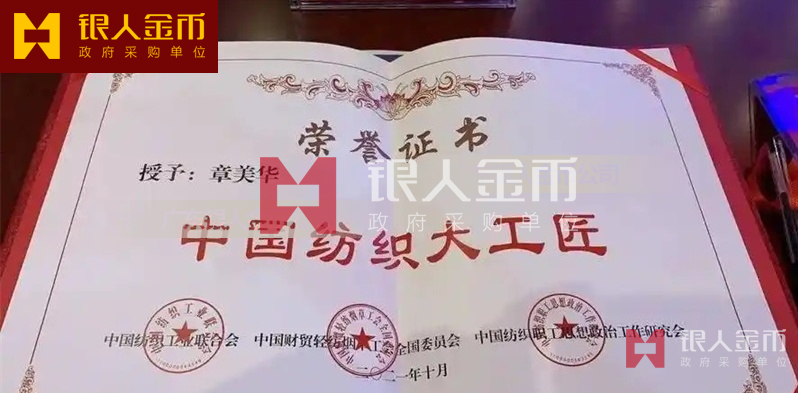 中國(guó)紡織大工匠獎(jiǎng)?wù)聞渍录o(jì)念章榮譽(yù)獎(jiǎng)?wù)聵s譽(yù)勛章獎(jiǎng)牌證書(shū)(圖)