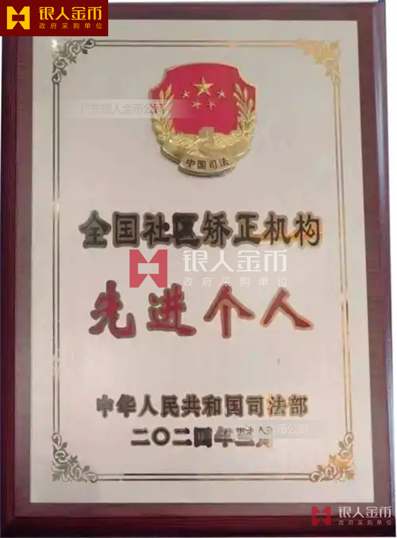 司法部全國社區(qū)矯正機構(gòu)先進個人和先進集體獎牌證書(圖)