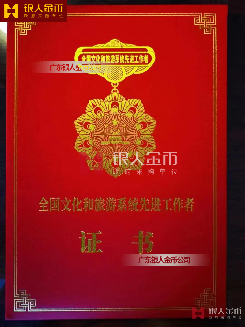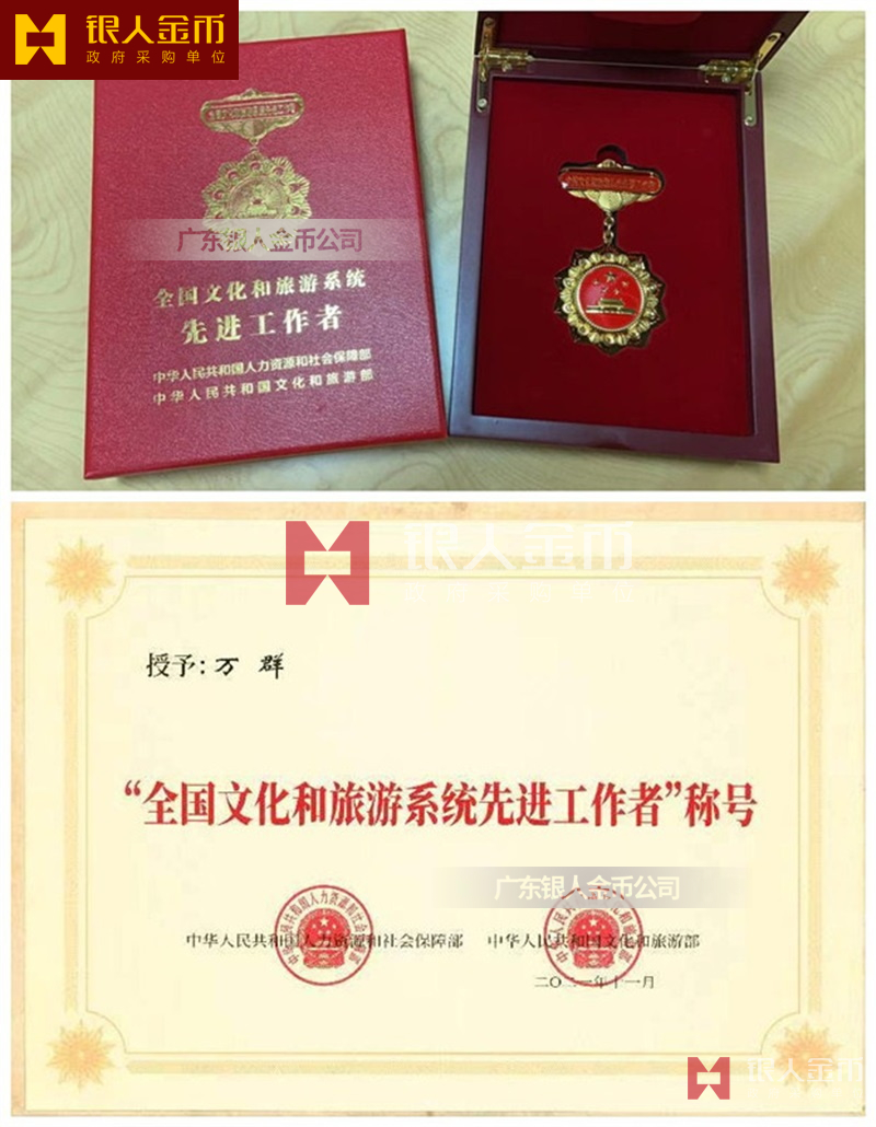中華人民共和國文化和旅游部全國文化和旅游系統(tǒng)先進(jìn)集體與先進(jìn)工作者獎?wù)聞渍录o(jì)念章獎牌證書(圖)
