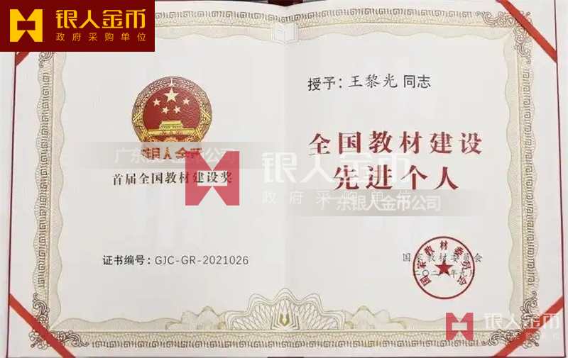國(guó)家教材委員會(huì)全國(guó)教材建設(shè)先進(jìn)集體和全國(guó)優(yōu)秀教材獎(jiǎng)與先進(jìn)個(gè)人獎(jiǎng)?wù)伦C書(shū)勛章紀(jì)念章(圖)