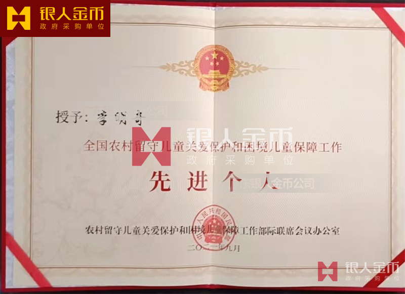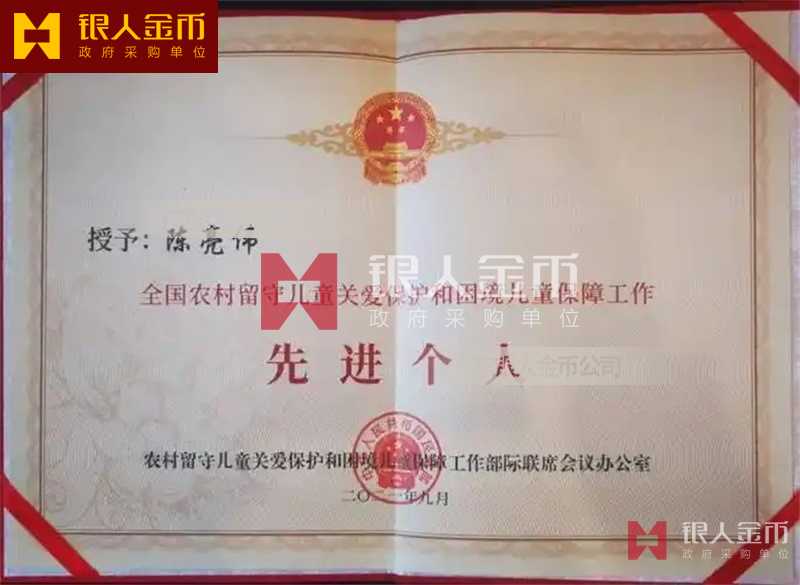 國務(wù)院全國農(nóng)村留守兒童關(guān)愛保護和困境兒童保障工作先進集體獎牌證書和先進個人獎?wù)录o(jì)念章勛章證書(圖)