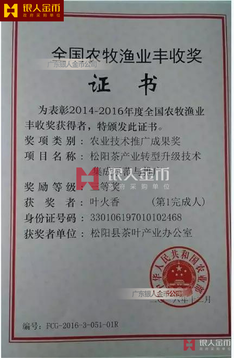國家農村農業(yè)部全國農業(yè)技術推廣成果獎獎牌證書與農牧漁業(yè)豐收獎獎牌證書(圖)