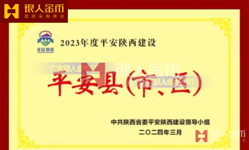 中共陜西省委政法委員會金鼎銀鼎銅鼎平安鼎和平安市區(qū)縣獎牌證書(圖)中共陜西省委平安陜西建設工作領導小組辦公室監(jiān)制頒發(fā)頒授
