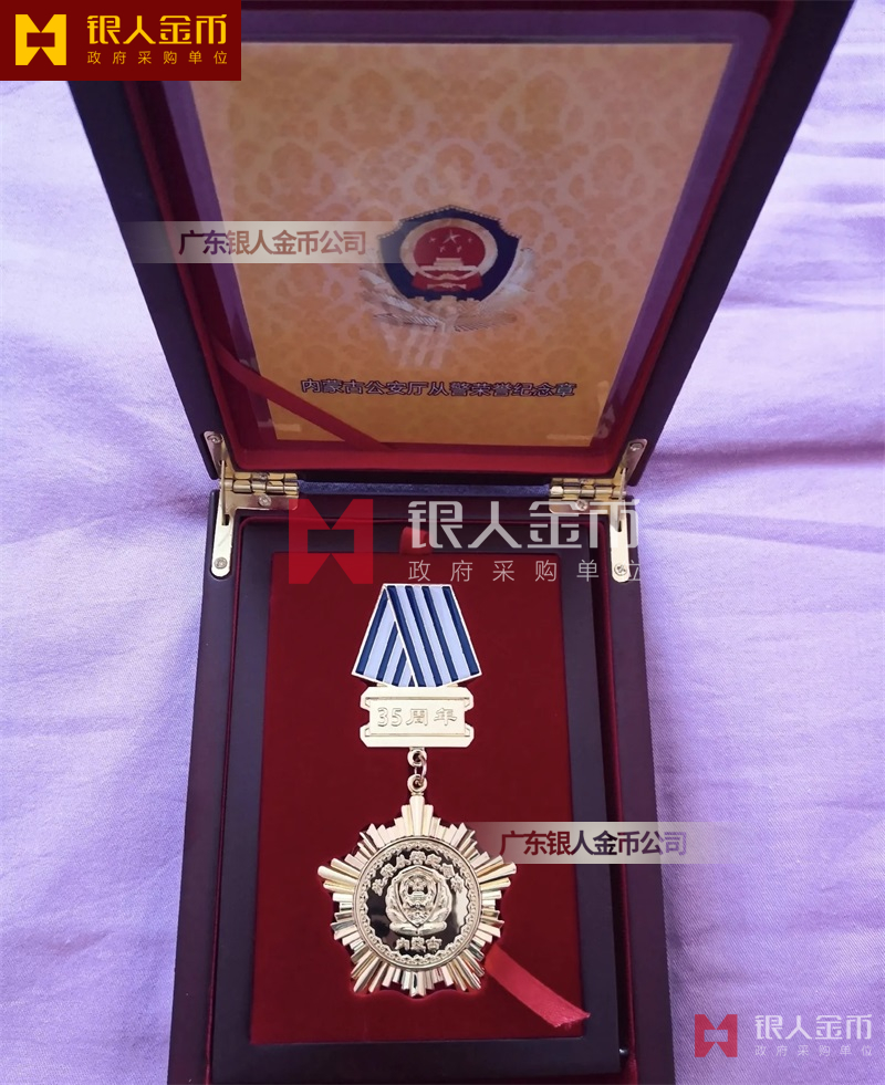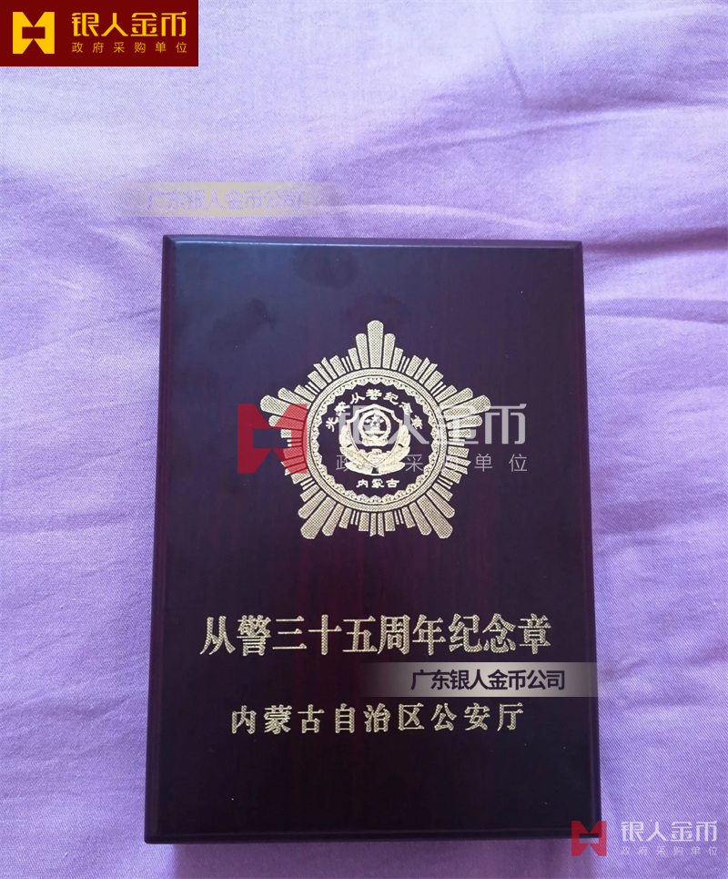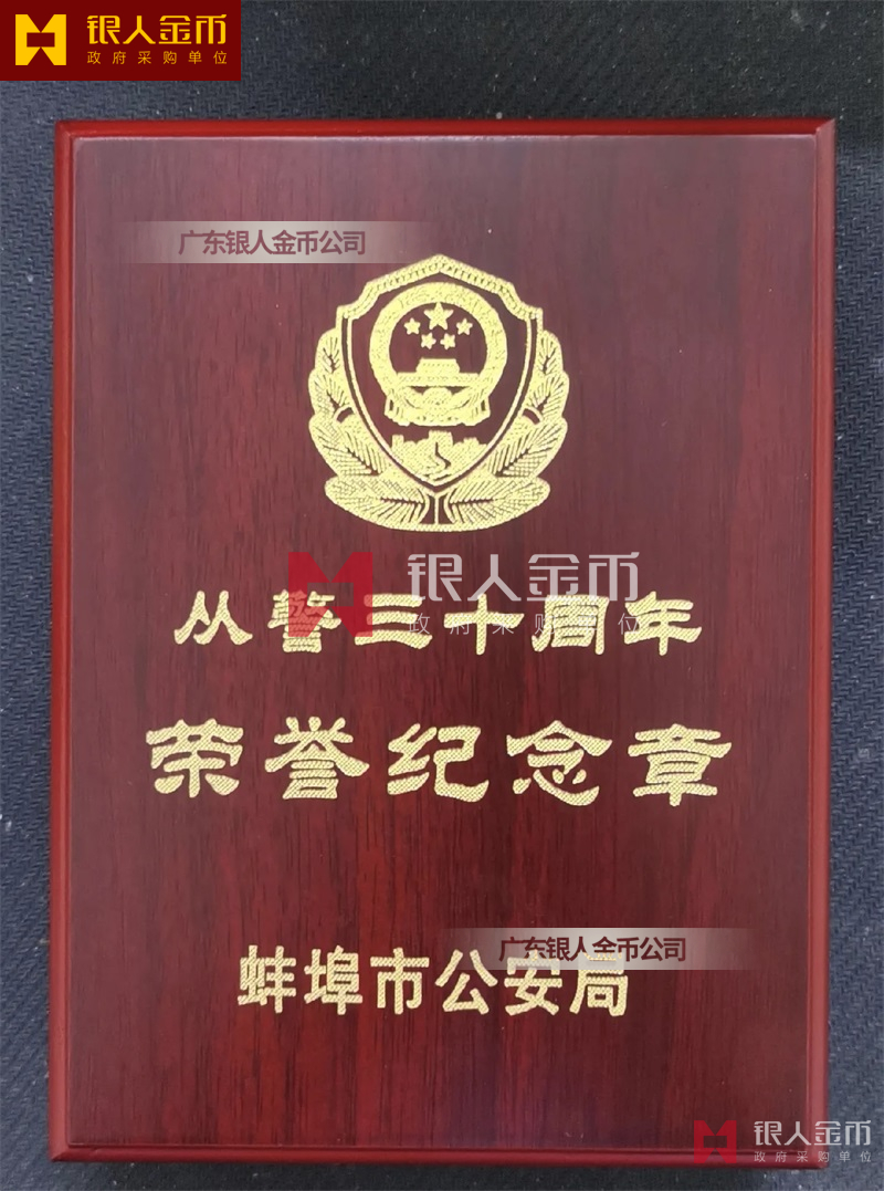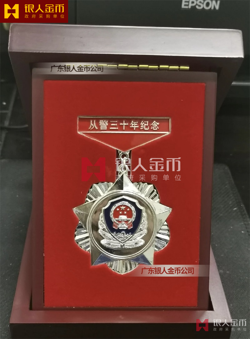 從警紀念章定制,從警年限紀念章定制,從警獎章定制——從警紀念章的底下主體部分都是警徽,上面橫檔部分是不相同的,有:從警十年紀念(從警10年紀念章)、從警二十年紀念(從警20年紀念章)、從警三十年紀念(從警30年紀念章)從警四十年紀念(從警40年紀念章)”不同的,從警十年紀念章(從警10年獎章)表面是鍍銅色銅質獎章)從警二十年紀念章(從警20年獎章)表面鍍(銀質獎章)、從警三十年紀念章(從警30年獎章)和從警四十年紀念章(從警40年獎章)表面鍍金色金質獎章) ,整體將從警獎章或從警紀念章(從警特定年限紀念章也叫從警章)鑲嵌在三折的立式木盒上面,木盒外面配有紙盒,整體做工精美,木盒紙盒上面都刻有警徽從警年限等。