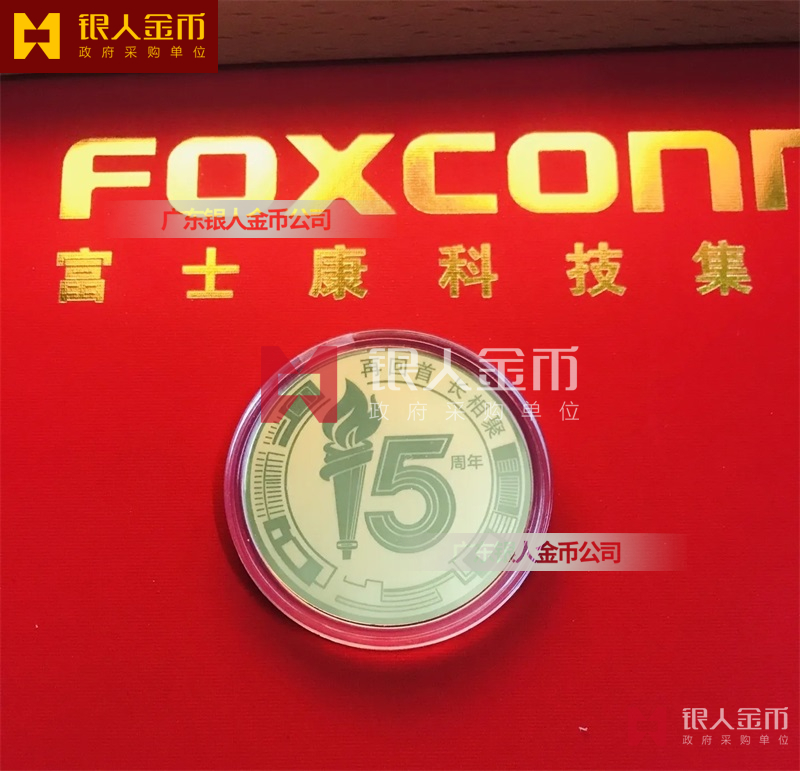 河南富士康公司五年十年十五年員工紀念金幣定制黃金金牌訂制黃金紀念幣定做(圖)【鄭州定制紀念幣定做金銀紀念幣】