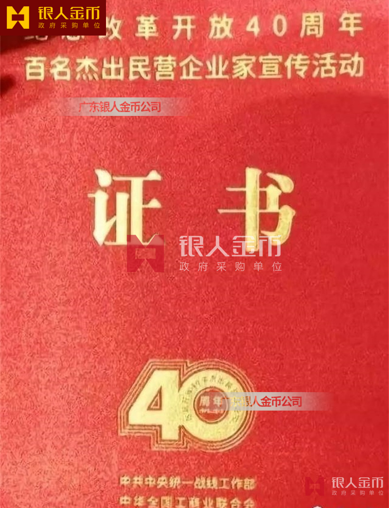 中共中央統(tǒng)戰(zhàn)部全國(guó)工商聯(lián)改革開放40年百名杰出民營(yíng)企業(yè)家獎(jiǎng)?wù)录o(jì)念章獎(jiǎng)牌證書(圖)