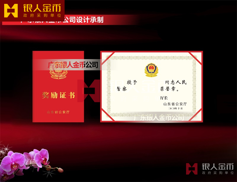 - 配套獎勵證書:紅色封面燙金警徽,內(nèi)頁由廳長簽發(fā),權(quán)威莊重。
