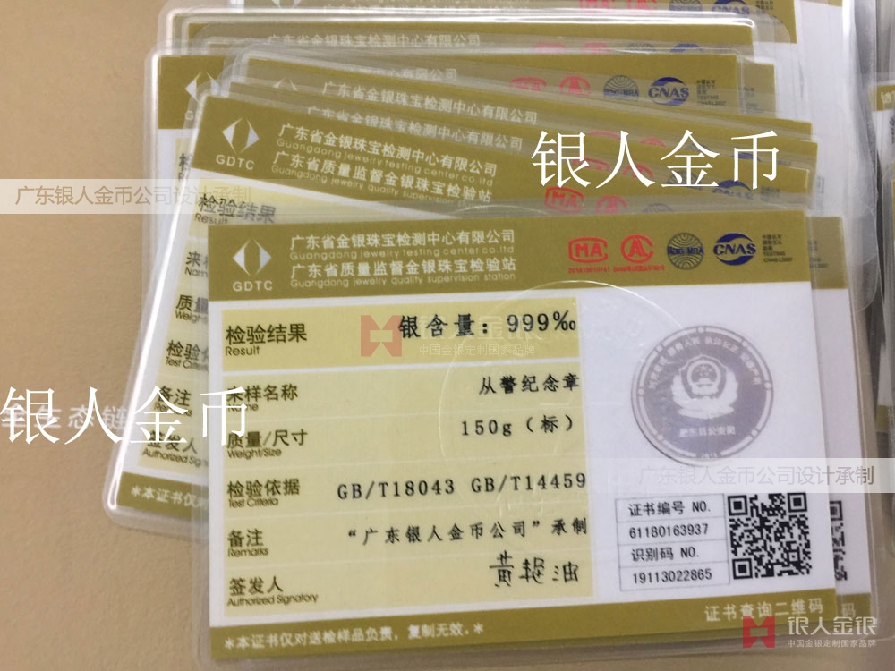 每一枚金銀產(chǎn)品均附有國家檢測證書。