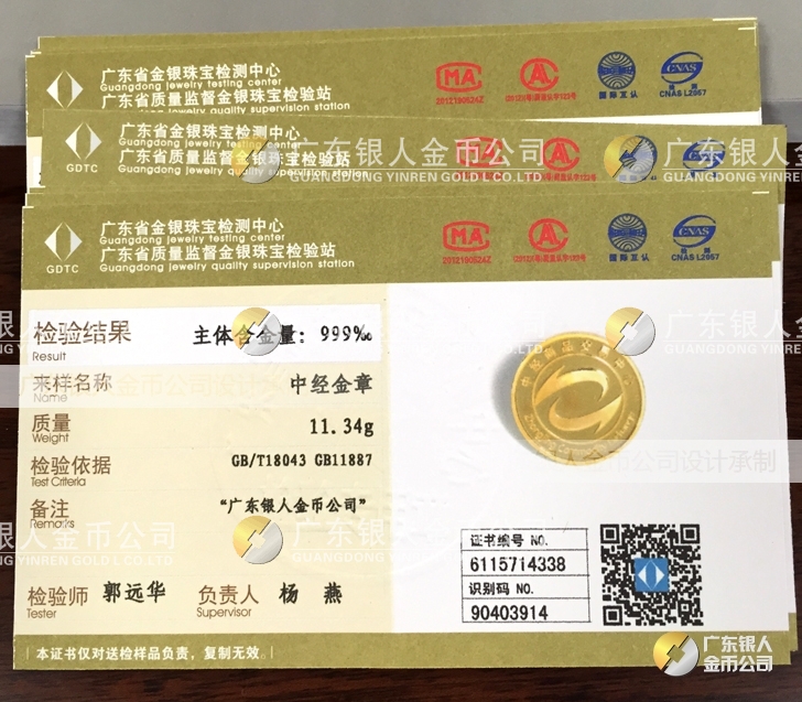 國家金銀質(zhì)量檢測中心金銀質(zhì)量檢測證書