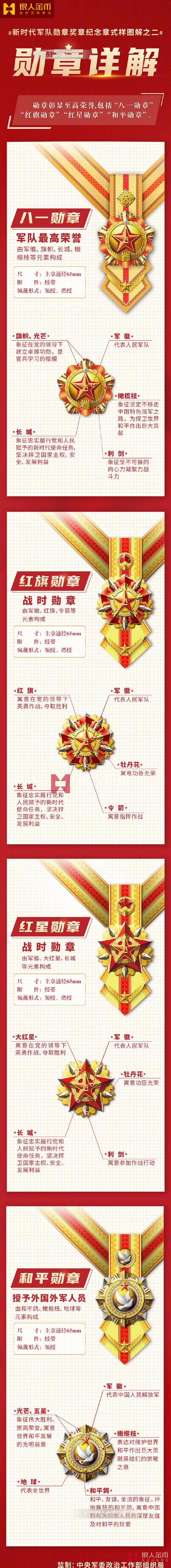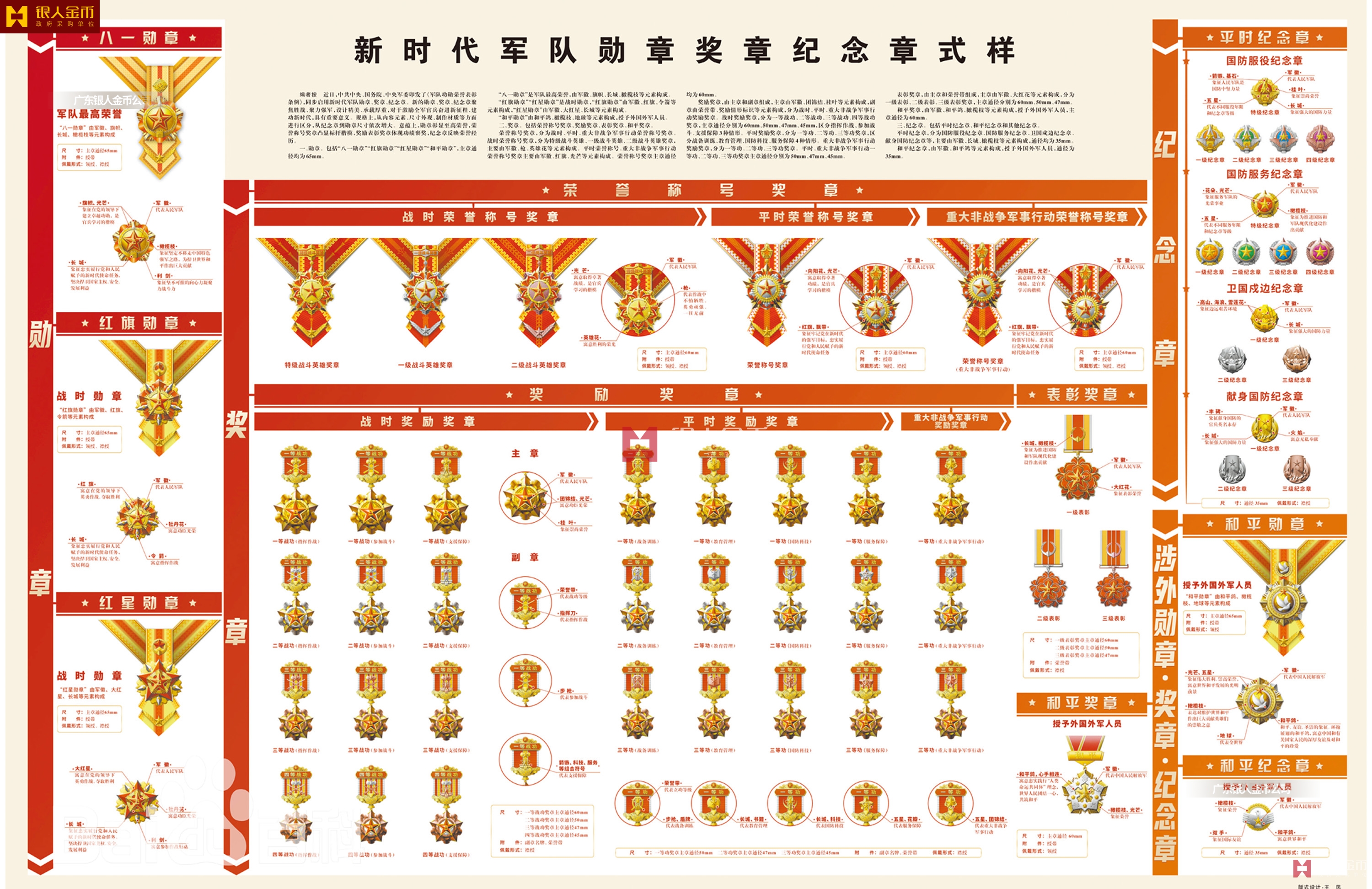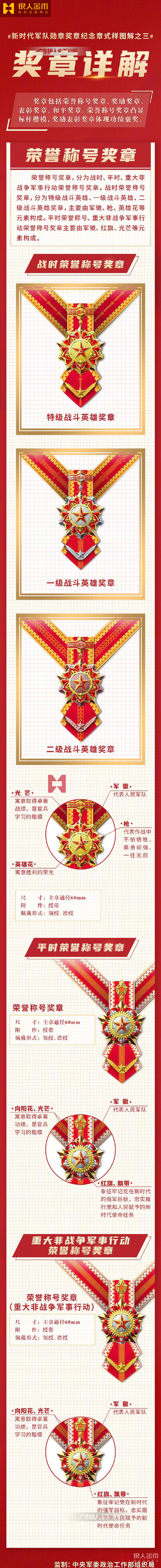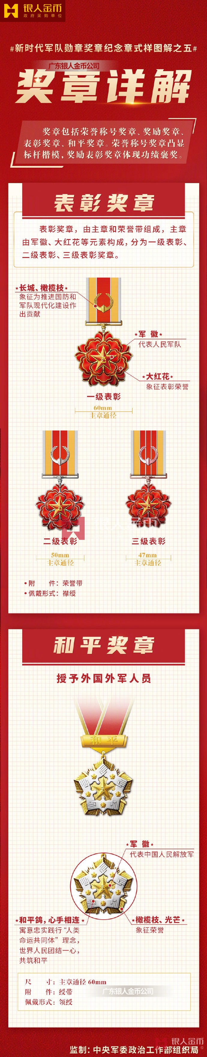 近日,《軍隊(duì)功勛榮譽(yù)表彰條例》印發(fā),同步啟用新時(shí)代軍隊(duì)勛章、獎(jiǎng)?wù)?、紀(jì)念章:①勛章。包括“八一勛章”“紅旗勛章”“紅星勛章”“和平勛章”,主章通徑均為65mm。②獎(jiǎng)?wù)?。包括榮譽(yù)稱號(hào)獎(jiǎng)?wù)隆ⅹ?jiǎng)勵(lì)獎(jiǎng)?wù)?、表彰?jiǎng)?wù)隆⒑推姜?jiǎng)?wù)?。③紀(jì)念章。包括平時(shí)紀(jì)念章、和平紀(jì)念章和其他紀(jì)念章。中央軍委最新版新時(shí)代部隊(duì)?wèi)?zhàn)區(qū)榮譽(yù)稱號(hào)軍隊(duì)勛章、獎(jiǎng)?wù)隆⒓o(jì)念章(定制標(biāo)準(zhǔn))