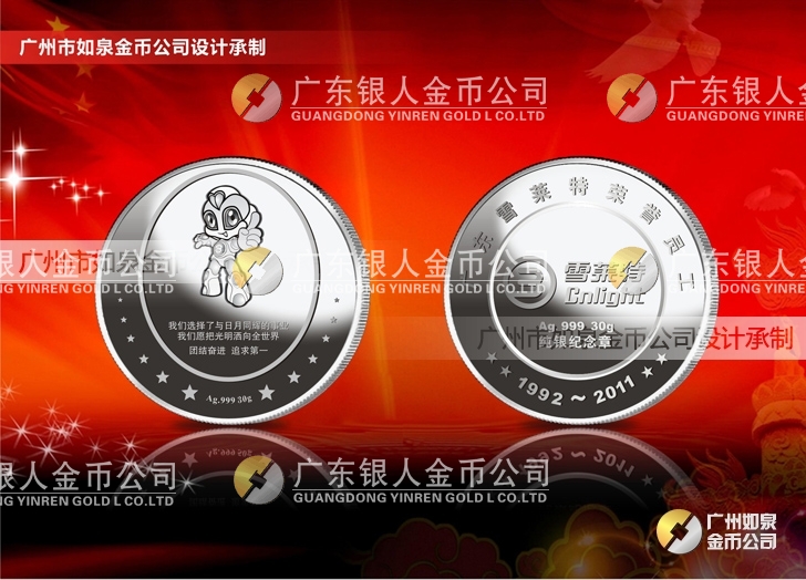 定制佛山雪萊特訂制純銀紀念幣定制?