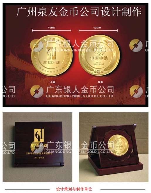 2011年9月中國中鐵紀(jì)念金章定制,純金金章黃金紀(jì)念章定做
