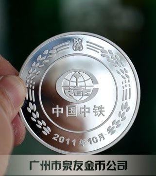 2011年9月中國中鐵純銀鑲純金紀(jì)念章定做,銀鑲金紀(jì)念章定做