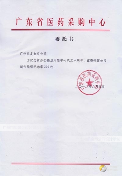 2012年9月:定制廣東省衛(wèi)生廳下屬單位定制金銀紀(jì)念章