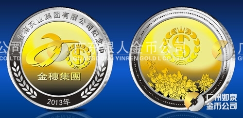 2013年3月金穗公司銀鑲金紀(jì)念章訂做,銀鑲金紀(jì)念章訂制