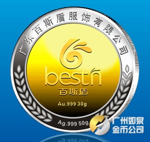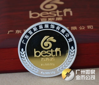 2013年11月廣東百斯盾公司銀包金紀念章訂做制做銀鑲金紀念章