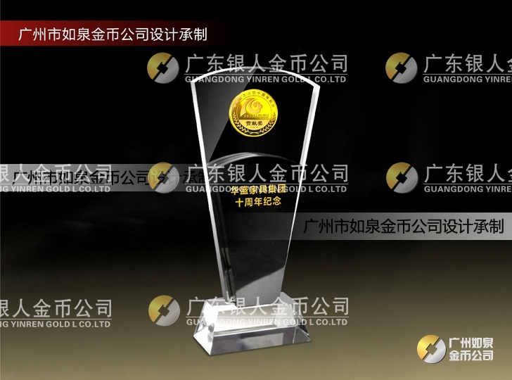 中山華盛集公司周年慶典制作純金紀(jì)念幣鑲水晶擺件