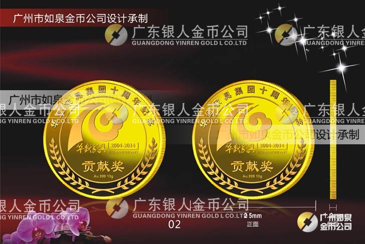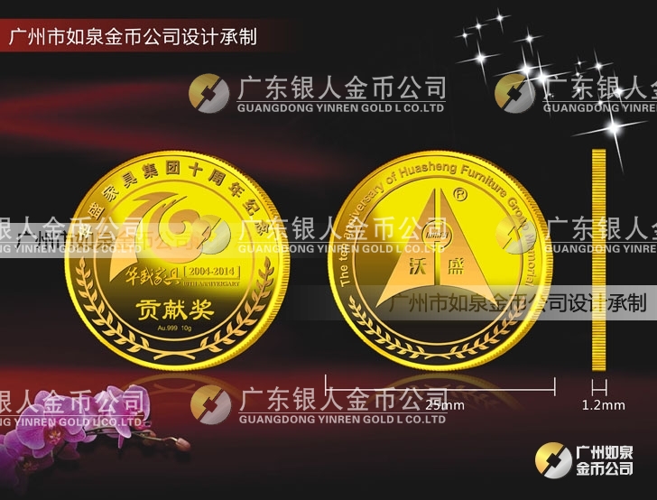 中山華盛公司年會(huì)表彰獎(jiǎng)勵(lì)在崗三年、服務(wù)滿五年、十年優(yōu)秀員工貢獻(xiàn)獎(jiǎng)定做純金金牌、定制純金獎(jiǎng)牌  制作千足金金幣
