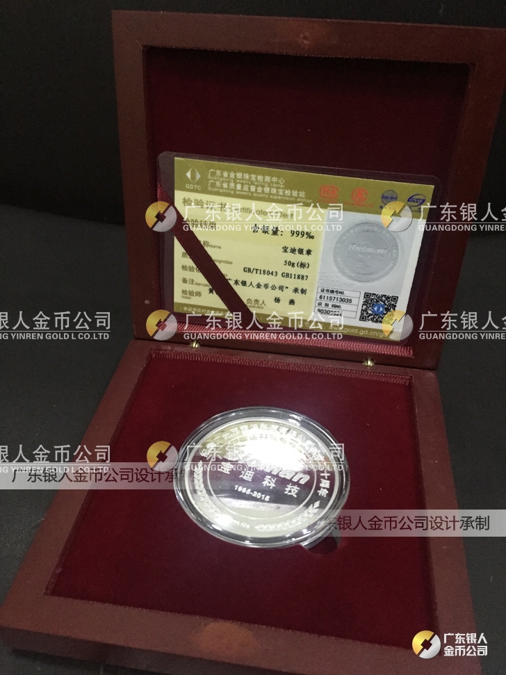 廣東銀人金幣公司承接客戶(hù)個(gè)性化定制的金銀幣、金銀章、金銀條、金銀牌、金銀盤(pán)均由國(guó)家質(zhì)監(jiān)部門(mén)、嚴(yán)格檢測(cè)、權(quán)威鑒定: