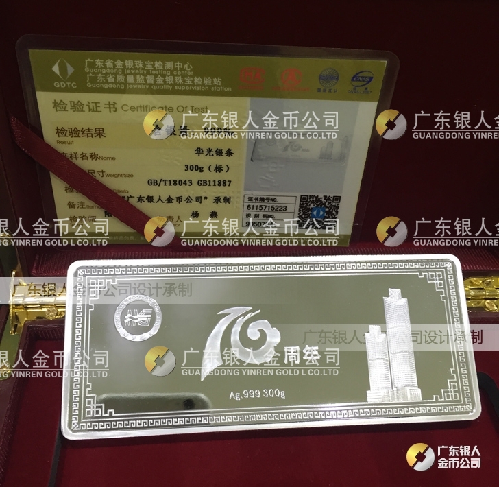 廣東銀人金幣公司承接客戶個性化定制的金銀幣、金銀章、金銀條、金銀牌、金銀盤均由國家質(zhì)監(jiān)部門、嚴(yán)格檢測、權(quán)威鑒定: