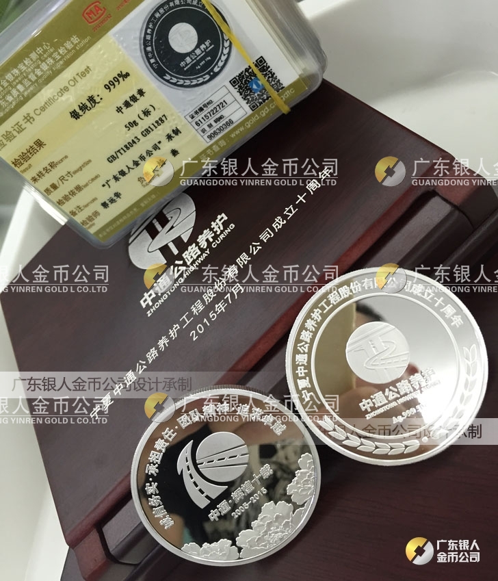 2015年7月生產(chǎn) 寧夏中通公司999純銀材質(zhì)銀章紀念章制作