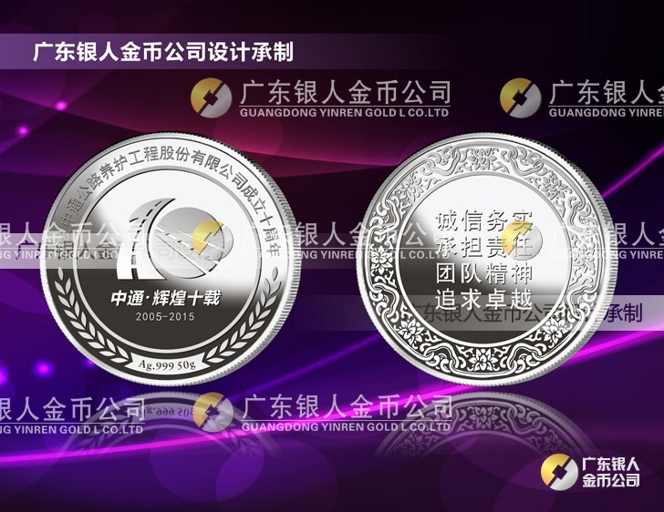 2015年7月鑄造 寧夏中衛(wèi)中通公路工程公司十周年慶純銀銀牌定制