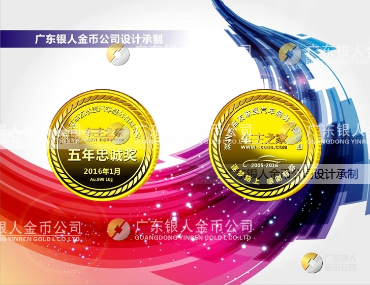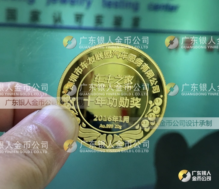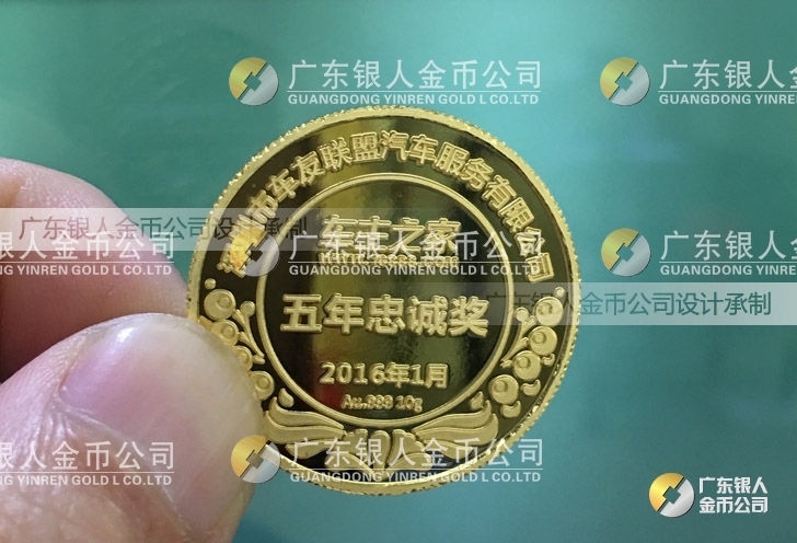2016年1月制造 深圳車主之家公司五年忠誠獎純金金牌制造