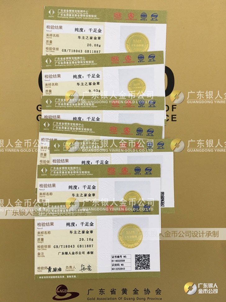 廣東銀人金幣公司承接客戶個(gè)性化定制的金銀幣、金銀章、金銀條、金銀牌、金銀盤均由國(guó)家質(zhì)監(jiān)部門、嚴(yán)格檢測(cè)、權(quán)威鑒定: