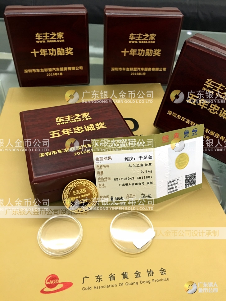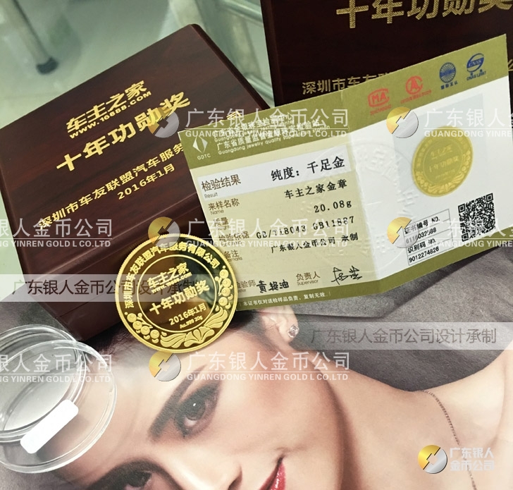 2016年1月訂制 深圳車(chē)主之家十年功勛獎(jiǎng)黃金純金獎(jiǎng)牌訂做