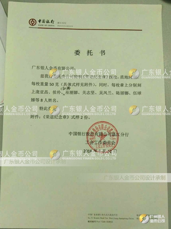 廣東銀人金幣公司,是集紀(jì)念章、獎(jiǎng)?wù)?、勛章設(shè)計(jì)、研發(fā)、定制并服務(wù)于榮譽(yù)稱號全表彰獎(jiǎng)勵(lì)周期管理,致力于證章文化產(chǎn)業(yè)發(fā)展和徽章信息化研究的大型生產(chǎn)制造獨(dú)資企業(yè),是國家級紀(jì)念章、獎(jiǎng)?wù)碌脑O(shè)計(jì)者(外包)、制造者(定點(diǎn))和維護(hù)者(認(rèn)可),金銀章綜合解決方案的提供者。在全國獎(jiǎng)?wù)聞渍骂I(lǐng)域,廣東銀人金幣公司擁有專業(yè)的勛章產(chǎn)業(yè)規(guī)模、齊全的證章門類和完整的紀(jì)念章產(chǎn)業(yè)鏈條。