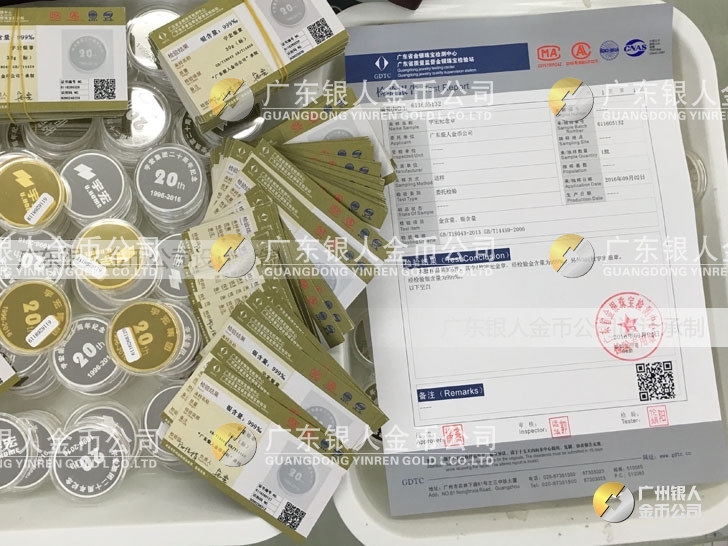 廣東銀人金幣公司承接客戶個性化定制的金銀幣、金銀章、金銀條、金銀牌、金銀盤均由國家質監(jiān)部門、嚴格檢測、權威鑒定: