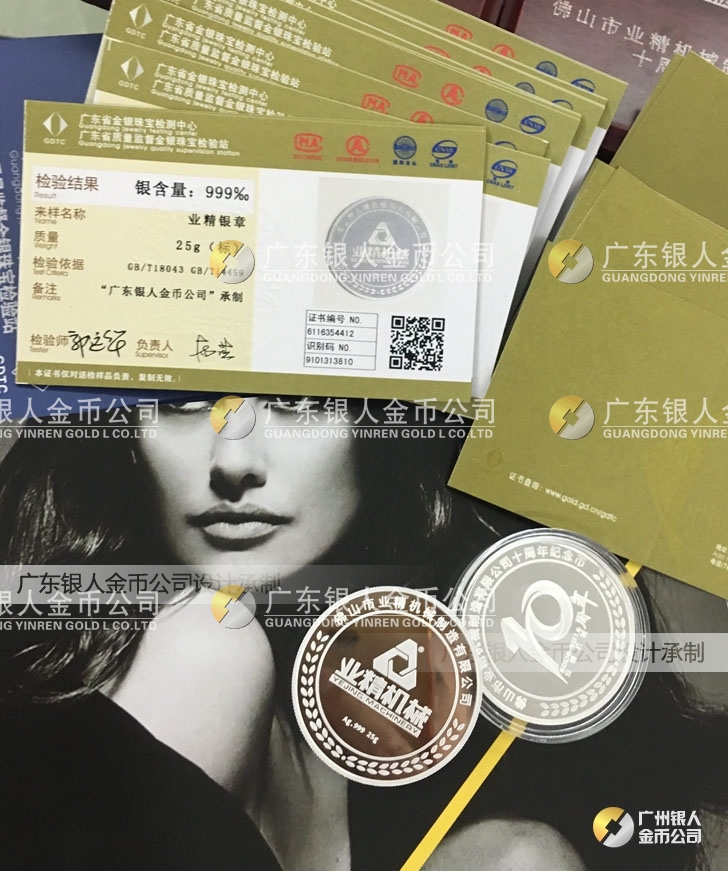 廣東銀人金幣公司承接客戶個性化定制的金銀幣、金銀章、金銀條、金銀牌、金銀盤均由國家質(zhì)監(jiān)部門、嚴(yán)格檢測、權(quán)威鑒定: