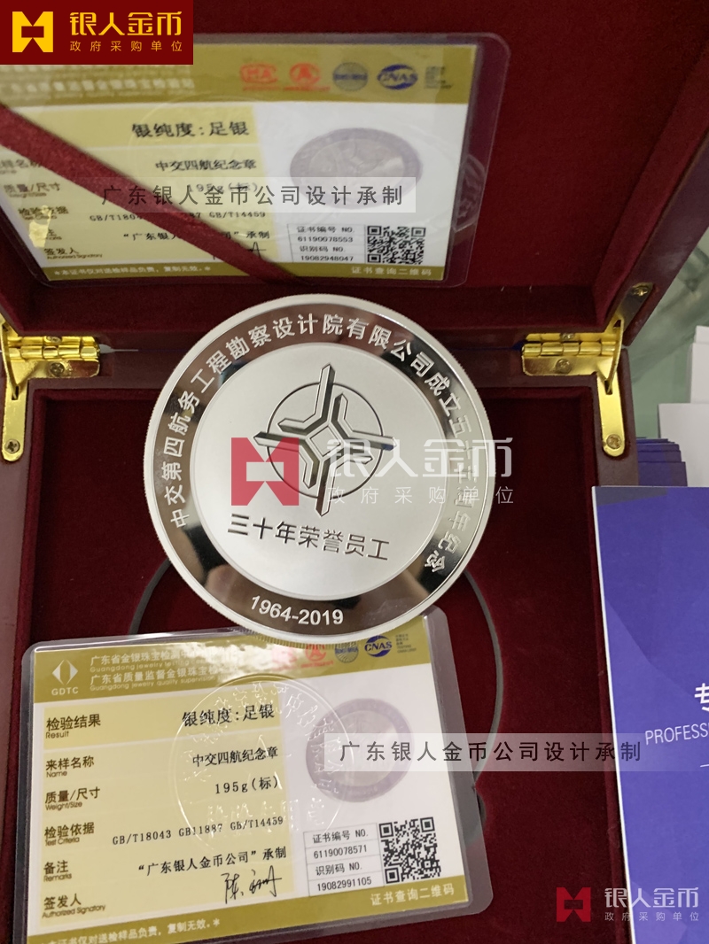 中國交建表彰在港珠澳大橋工程建設(shè)中突出貢獻榮譽員工紀念章定制、中交四航成立55周年紀念幣定制、榮譽紀念章定制。