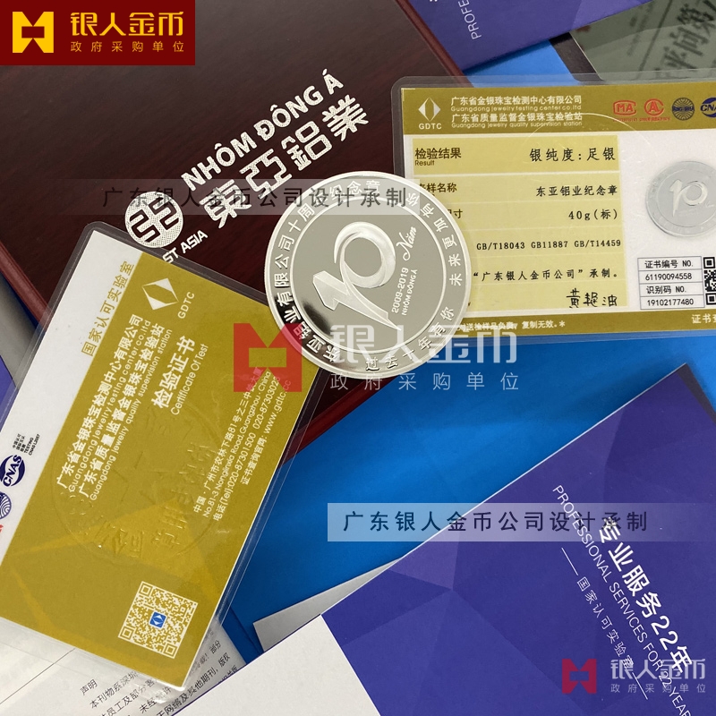 東亞鋁業(yè)集團(tuán)在創(chuàng)業(yè)十年后恰逢公司成立10周年紀(jì)念慶典、委托定制銀紀(jì)念幣1200枚。