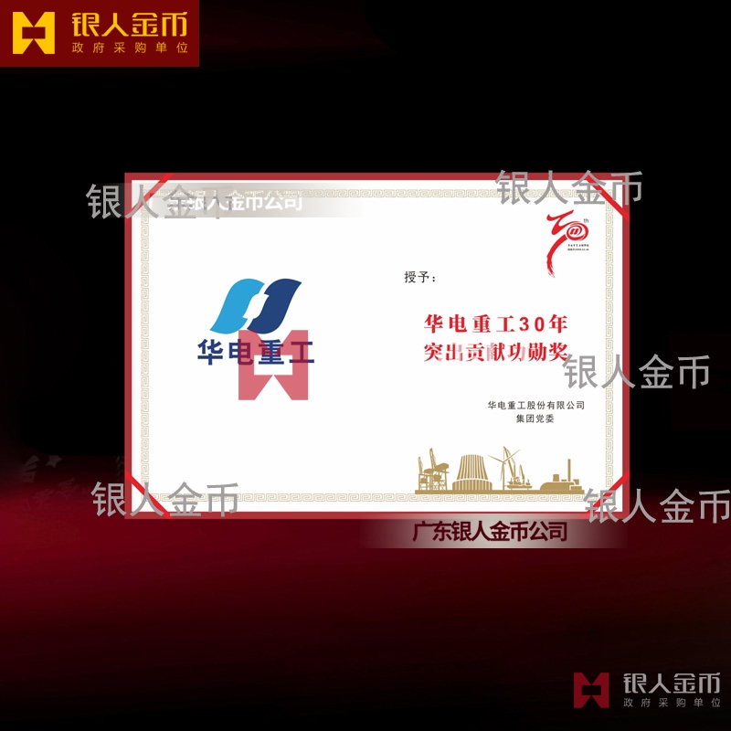 北京央企華電重工股份上市公司獎勵證書定制_年會表彰優(yōu)秀員工榮譽證書定制_國企突出貢獻榮譽稱號獲獎獎牌證書訂制