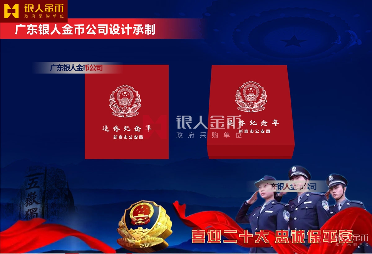 山東省公安廳泰安市新泰市公安局公安機(jī)關(guān)民警退休紀(jì)念章定制_從警年限紀(jì)念榮譽(yù)章_警察從警30周年40周年紀(jì)念章定制_干警光榮退休紀(jì)念章定做訂制制作