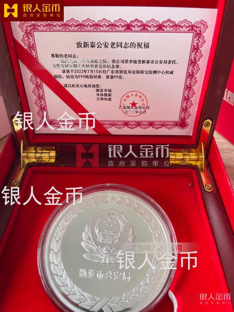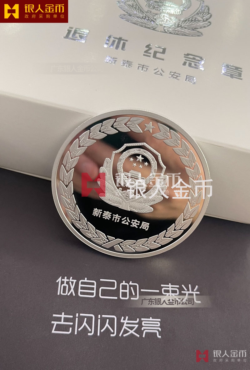 山東省公安廳泰安市新泰市公安局民警從警紀(jì)念章定制_從警榮譽(yù)章定做_警察從警章制作_公安干警工作30周年40周年紀(jì)念章定制_警察光榮離休退休榮休紀(jì)念章訂制