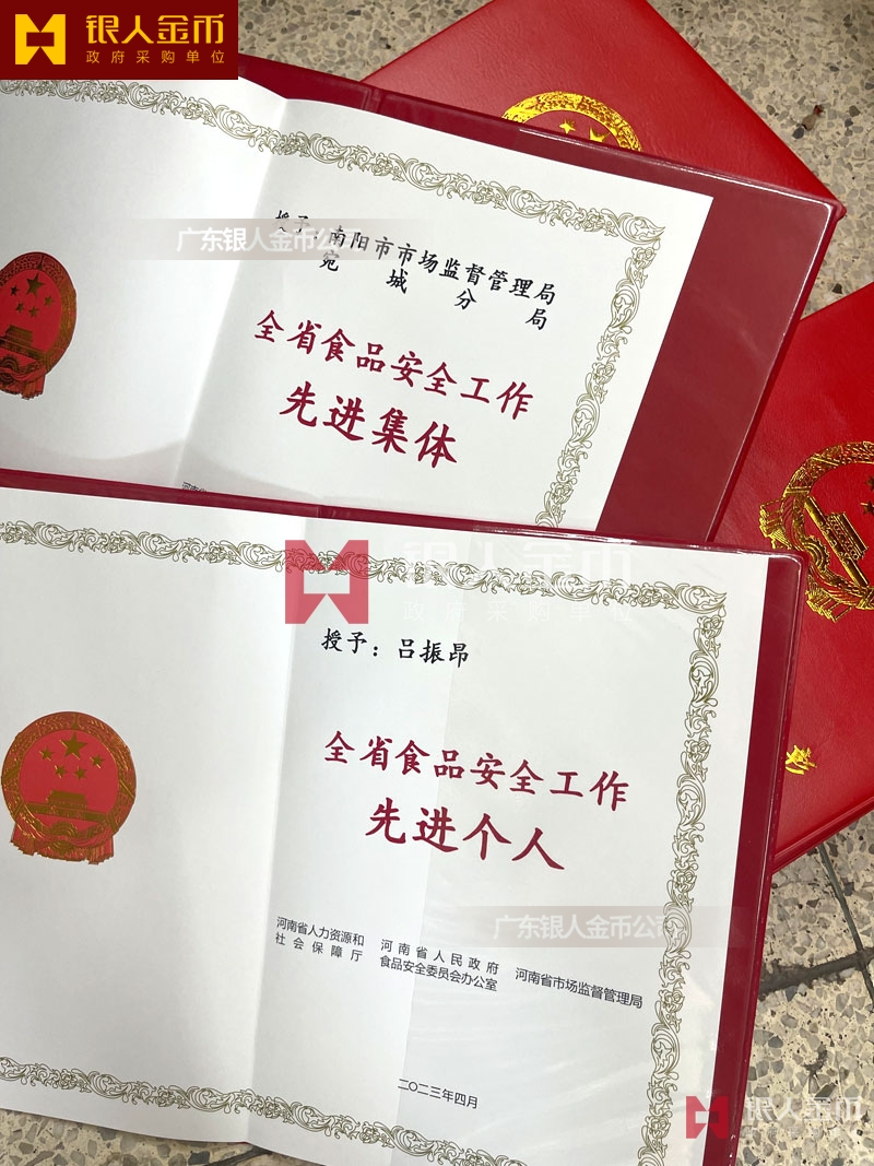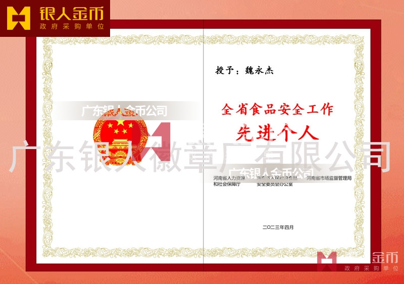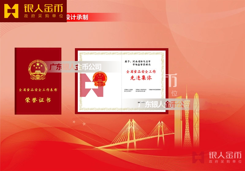 河南省政府全省食品安全工作表彰獎(jiǎng)勵(lì)證書定制制作_河南省人力資源和社會保障廳獎(jiǎng)勵(lì)表彰榮譽(yù)證書定做_河南省市場監(jiān)督管理局榮譽(yù)獎(jiǎng)勵(lì)表彰證書訂制