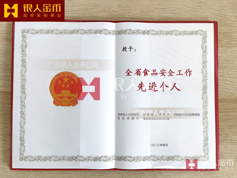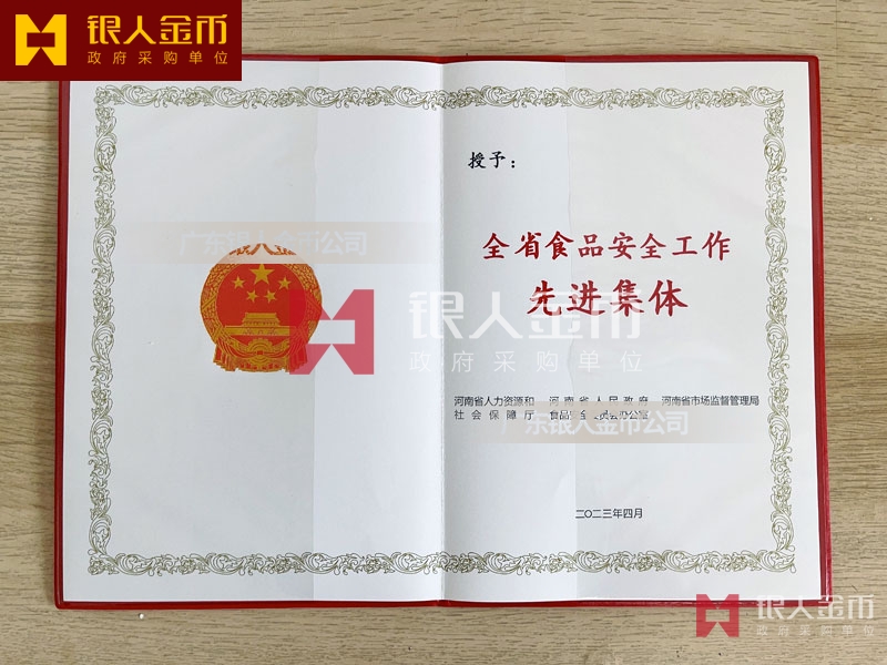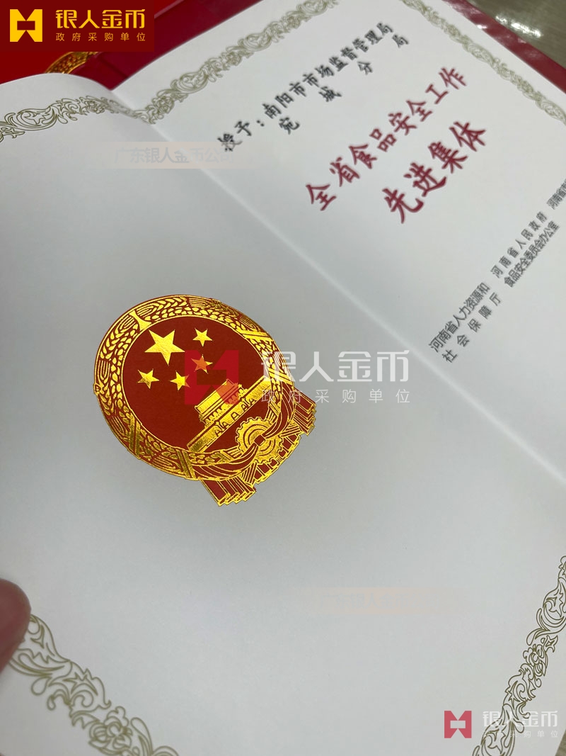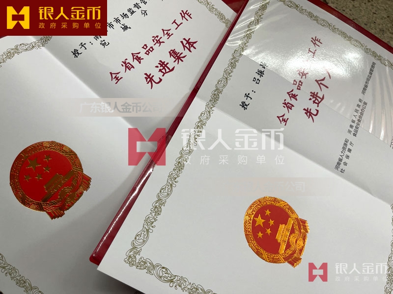 【證書制作】 廣東銀人金幣公司-獎(jiǎng)勵(lì)證書制作廠家