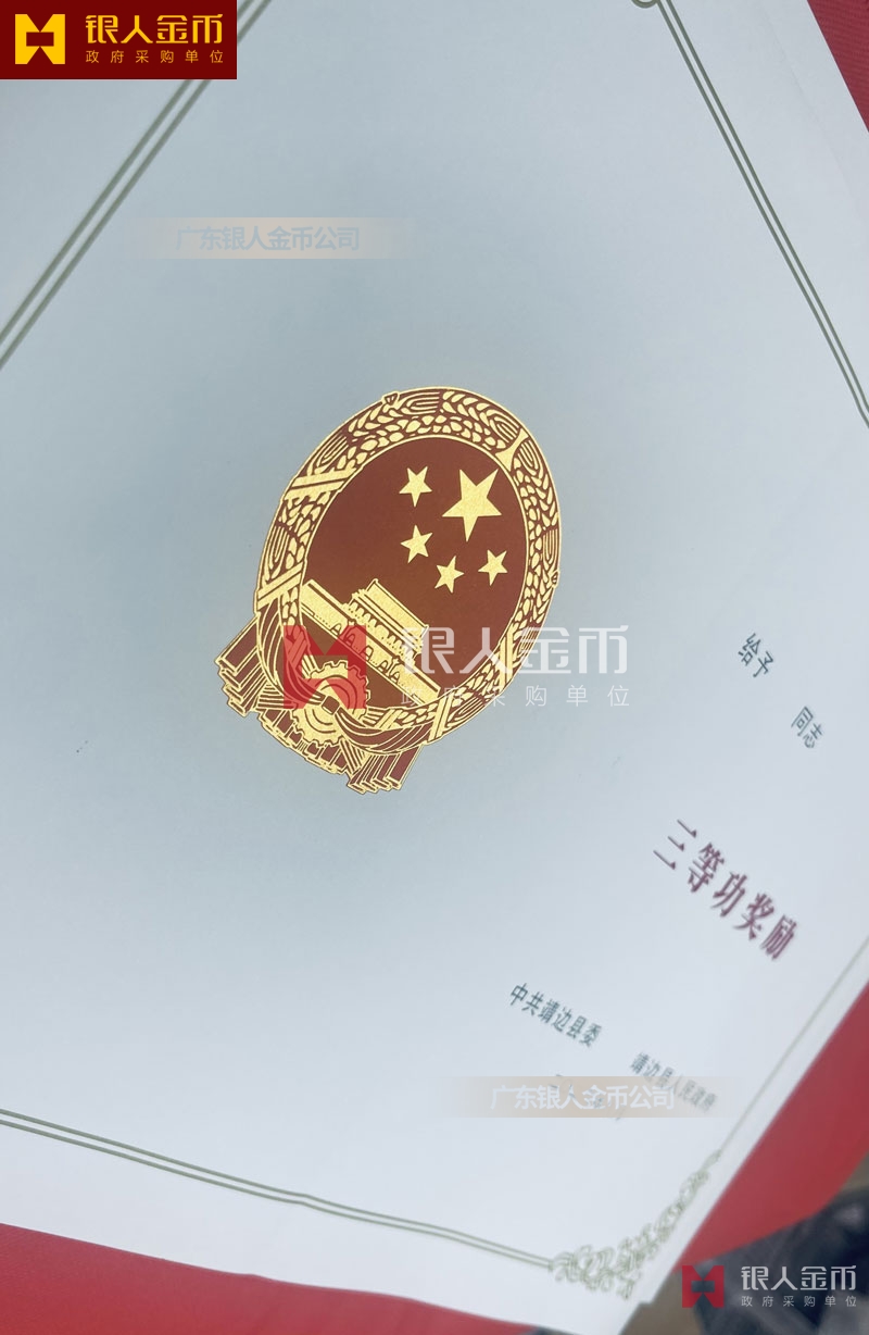 【證書制作】 廣東銀人金幣公司-獎(jiǎng)勵(lì)證書制作廠家