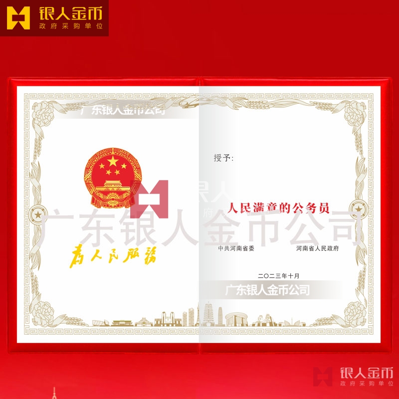 中共河南省委、省政府、省委組織部、人民滿意的公務(wù)員稱號榮譽證書定制_【政府采購單位】中共河南省委、河南省人民政府、中共河南省委組織部、 河南省人民滿意的公務(wù)員稱號榮譽證書定做_人民滿意的公務(wù)員集體榮譽稱號獎勵證書定制_公務(wù)員獎勵證書訂做_公務(wù)員記功證書制作_公務(wù)員立功證書定做