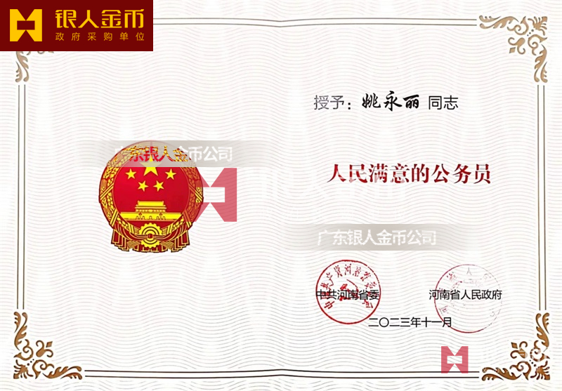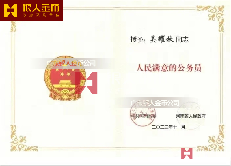 【公務(wù)員獎勵證書制作】 廣東銀人金幣公司-獎勵證書定制