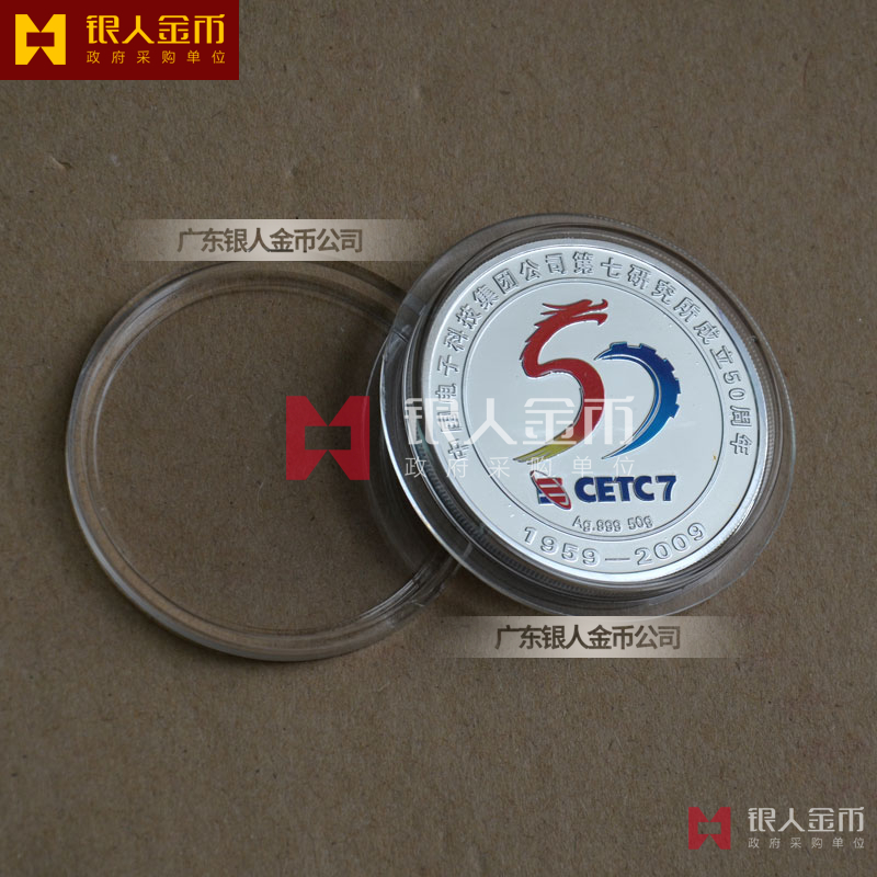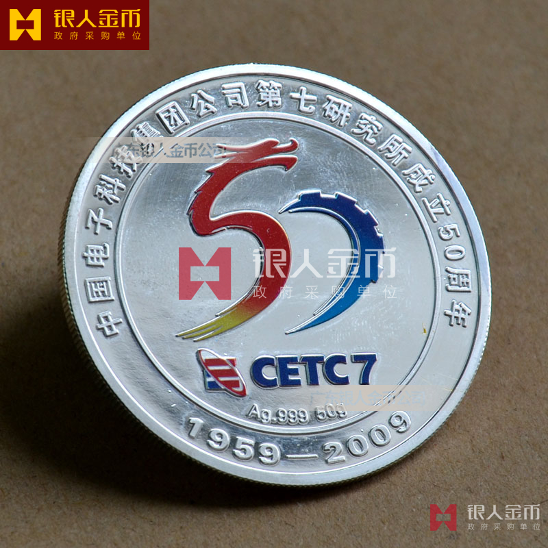 中國電子科技集團公司第七研究所成立五十周年紀(jì)念幣定制_周年紀(jì)念章定制_廣州足銀紀(jì)念章定制_廣州純銀銀章定制_廣州足銀銀章定制_廣州銀幣定制
