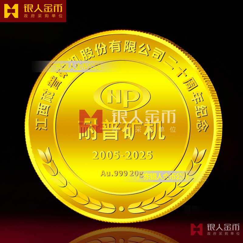 江西耐普礦機(jī)公司成立20周年紀(jì)念金幣制作_上市公司年會(huì)金銀幣制作_上市公司年會(huì)金銀章定制_企業(yè)創(chuàng)立二十周年定制金銀幣