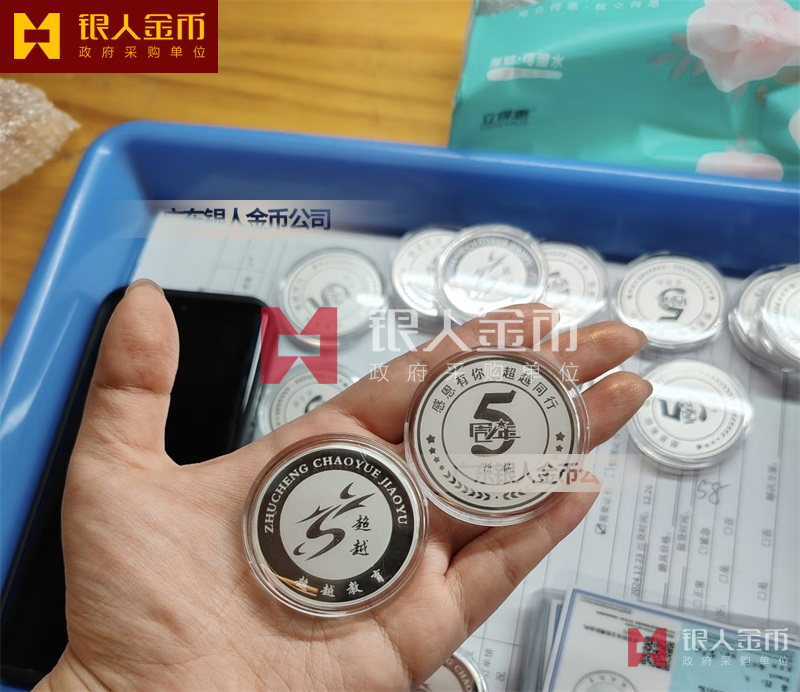 佛山超越教育5周年紀念銀幣定制_員工入職五周年紀念幣定制_員工工作滿5年銀牌定制_5年員工銀幣定制_入職紀念銀幣定制