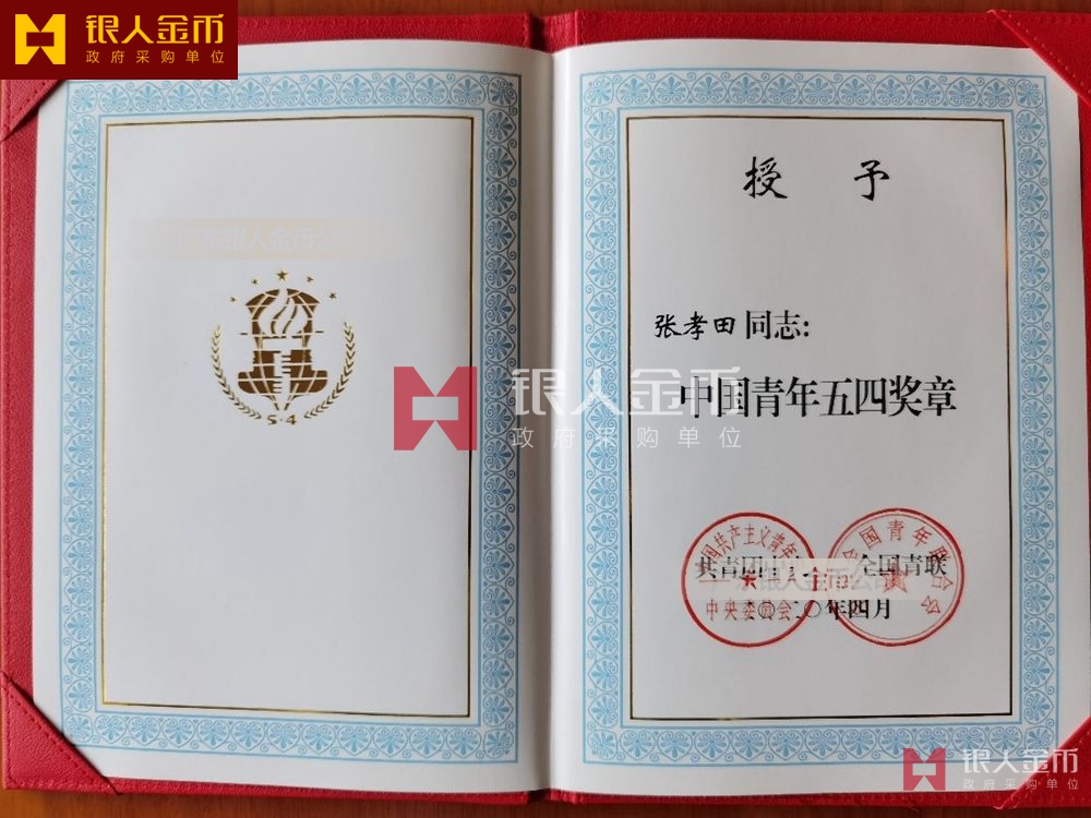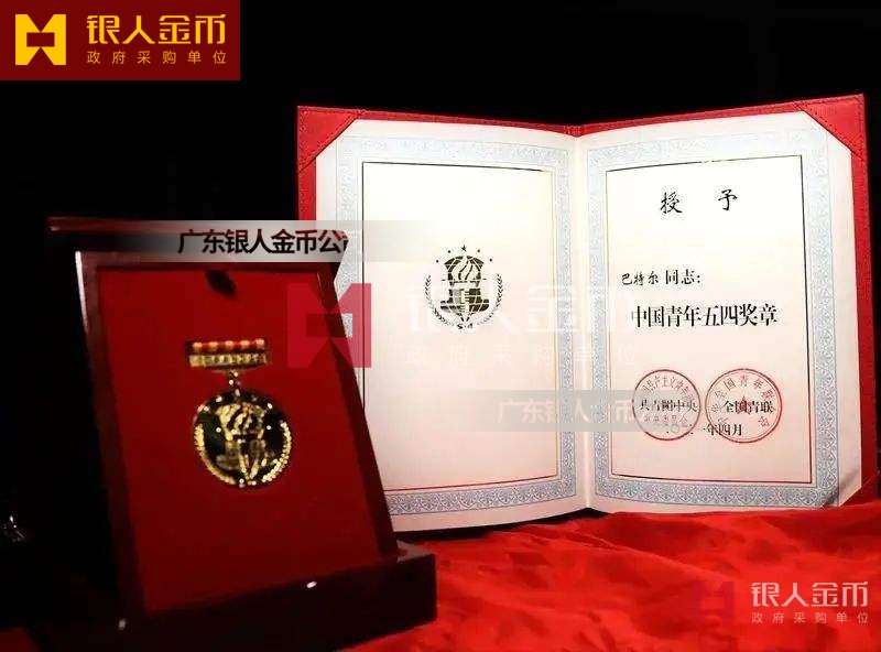 共青團(tuán)中央/全國青聯(lián)中國青年五四獎?wù)潞椭袊嗄晡逅莫務(wù)录w獎牌(圖)