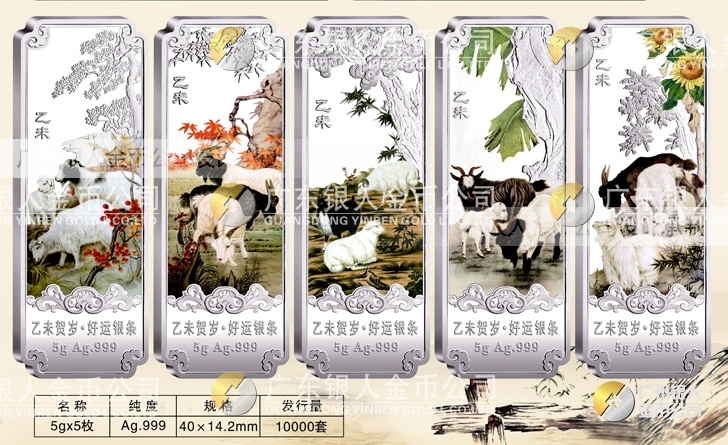 【Au.999純銀羊年賀歲銀條重量規(guī)格】 5克x5根、10克x5根、20克x5根盒裝、套裝